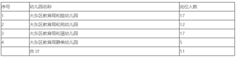 為進一步促進我區(qū)學前教育可持續(xù)健康發(fā)展,滿足百姓需求,增加普惠入園學位,經(jīng)大東區(qū)政府決定,在大東區(qū)教育局系統(tǒng)面向社會公開招聘編外合同制幼兒教師51人。