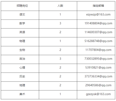 報(bào)名郵箱見(jiàn)“招聘崗位”表格中對(duì)應(yīng)科目的郵箱。