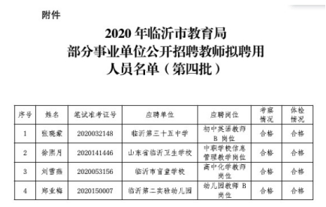 根據(jù)2020年臨沂市教育局部分事業(yè)單位公開招聘教師簡章和事業(yè)單位公開招聘相關(guān)規(guī)定,經(jīng)過筆試、面試、考察和體檢等程序,現(xiàn)將第四批擬聘用人員予以公示。公示期為7個工作日,自2021年3月19日至2021年3月29日(不含節(jié)假日)。公示期間,如對公示人選有異議,請及時向市教育局反映。