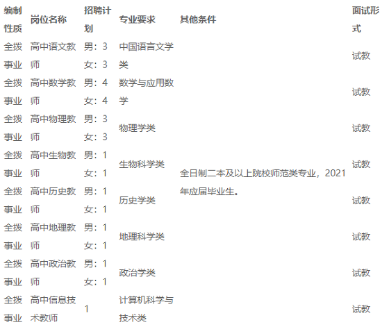根據(jù)辦學(xué)需要,學(xué)校面向高等院校畢業(yè)生招聘正式編制教師29人。招聘崗位及人數(shù)見下表: