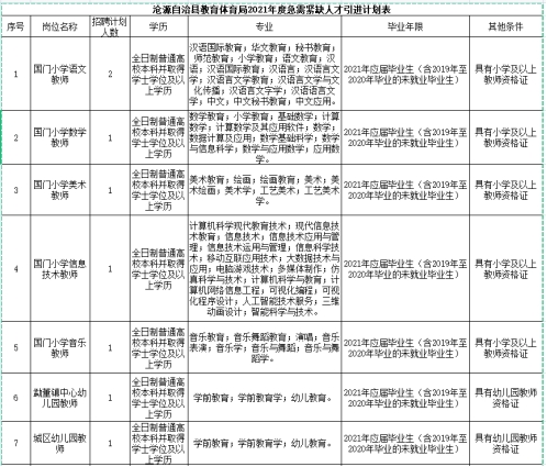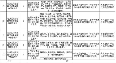 為加強滄源自治縣教師隊伍建設,改善教師隊伍結構,提高教師隊伍素質,緩解部分學科教師緊缺問題,根據《臨滄市人力資源和社會保障局關于2021年度急需緊缺專業(yè)人才引進公開招聘計劃的批復》,決定面向全國招聘26名事業(yè)單位急需緊缺專業(yè)人才到我縣任教,F將有關事項公告如下: