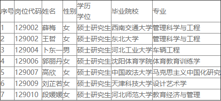 根據(jù)《河北省事業(yè)單位公開招聘工作人員暫行辦法》和《河北交通職業(yè)技術(shù)學(xué)院2020年公開招聘工作人員公告》,經(jīng)報名資格審查、考試、考察、體檢等程序,確定以下7人為擬聘人員,現(xiàn)予以公示: