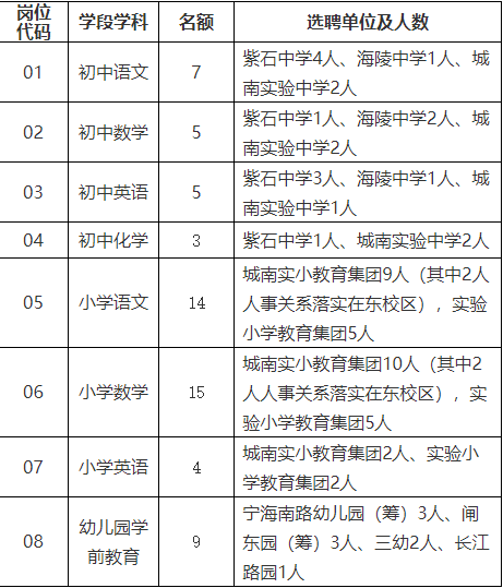 為滿足海安市部分學校(幼兒園)事業(yè)發(fā)展需要,經(jīng)研究,決定面向海安市教育體育系統(tǒng)內在編在崗教師進行公開選聘,現(xiàn)將有關事項公告如下: