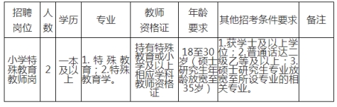 隆陽區(qū)教育體育局本次簽約招聘崗位為隆陽區(qū)九隆中心學(xué)校在編在崗教師,招聘人數(shù)2名,專門從事小學(xué)特殊教育教學(xué)工作,具體崗位要求如下: