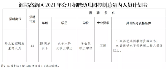 附件:濰坊高新區(qū)2021年公開(kāi)招聘幼兒園控制總量?jī)?nèi)人員計(jì)劃表