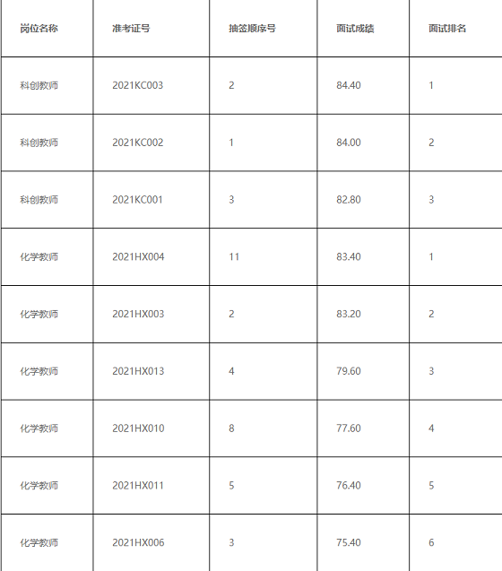 根據(jù)《2021年宜昌市教育局所屬事業(yè)單位急需緊缺人才引進(jìn)實(shí)施方案》和《2021年宜昌市科技高中急需緊缺人才引進(jìn)面試工作方案》安排,現(xiàn)將面試成績公布如下: