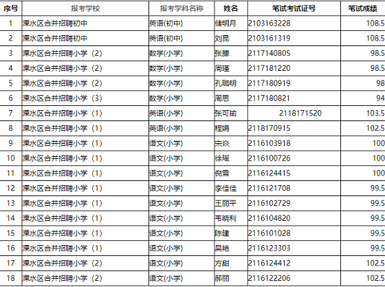 根據(jù)《南京市溧水區(qū)教育局所屬事業(yè)單位2021年公開招聘教師公告》(寧事招公告(R)﹝2021﹞8號)要求,現(xiàn)將面試遞補人員名單公告如下: