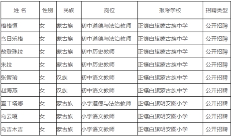 根據(jù)《錫林郭勒盟2021年度公開招聘義務(wù)教育階段民族語言授課學(xué)!叭啤苯y(tǒng)編教材教師實(shí)施方案》的規(guī)定,組織開展了義務(wù)教育民族語言授課學(xué)!叭啤苯y(tǒng)編教材教師公開招聘工作,經(jīng)網(wǎng)上報(bào)名、初審、面試、資格復(fù)審、體檢、考察等環(huán)節(jié),共有9人進(jìn)入擬聘用范圍,現(xiàn)按招聘程序公示如下: