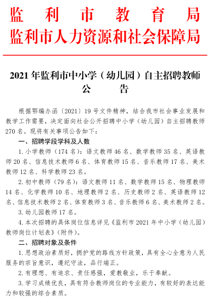 2021年監(jiān)利市中小學(xué)(幼兒園)自主招聘教師公告.pdf