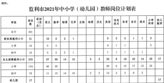 2021年湖北荊州監(jiān)利市中小學(xué)(幼兒園)自主招聘教師【301人】