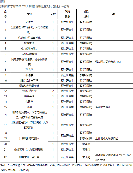 附件:河南科技學院2021年公開招聘員額制工作人員(碩士)一覽表
