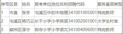 根據(jù)《關于進一步完善中小學教師招聘制度落實市縣中小學教師招聘主體責任的通知》(皖教秘師〔2020〕90號)及我市招聘公告有關規(guī)定:2021年度中小學新任教師公開招聘報考非單列計劃崗位的“服務基層項目”人員,筆試合成成績予以增加2分,F(xiàn)將黃山市符合政策加分考生情況公示如下: