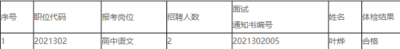 附:2021年池州市第一中學(xué)公開招聘教師體檢結(jié)果及考察人選名單(二)