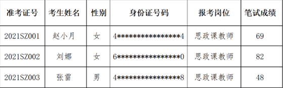 襄陽技師學院2021年度公開選聘工作人員筆試成績