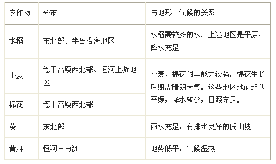 2.農(nóng)作物分布與自然條件的關(guān)系: