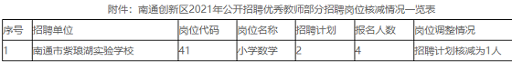 附:南通創(chuàng)新區(qū)2021年公開招聘優(yōu)秀教師部分招聘崗位核減情況一覽表