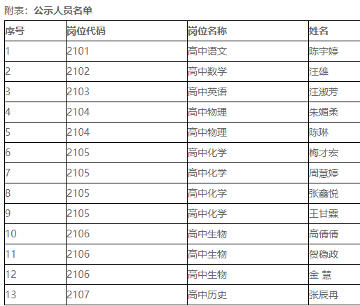 根據(jù)《合肥市廬江縣城區(qū)高中2021年面向部分高校引進(jìn)人才公告》規(guī)定,經(jīng)考試、體檢、考察等程序,其中報(bào)考(高中數(shù)學(xué))2102崗位王玲、張婷玉、曹悅璠等3名考生主動(dòng)放棄考察資格。現(xiàn)對(duì)擬聘用人選予以公示(共13人,名單詳見附件1),公示期7天(2021年4月16日至22日)。