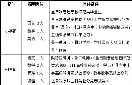 根據(jù)2021年事業(yè)發(fā)展需要,學(xué)校將公開招聘中、小學(xué)優(yōu)秀骨干教師,歡迎有志之士加盟。