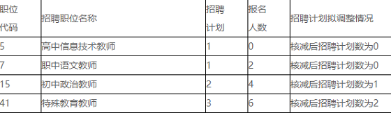 根據(jù)《東臺市教育局直屬學(xué)校2021年公開招聘教師公告》精神,因部分職位報名資格審核合格人數(shù)未達開考比例,決定調(diào)整部分職位招聘計劃(詳見附表)。