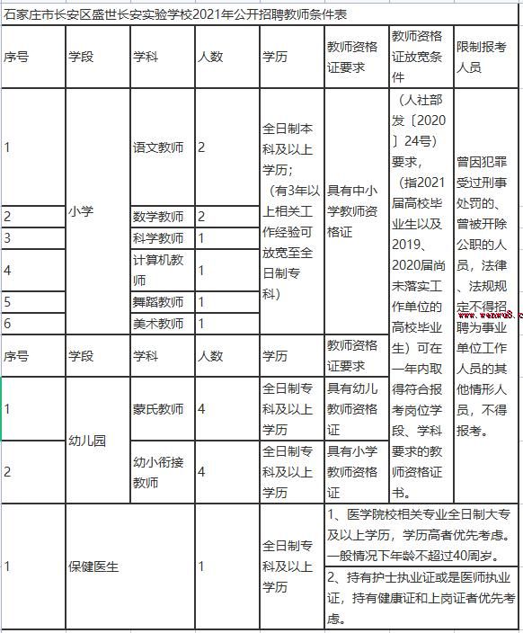 面試通過人員,由石家莊市長安區(qū)盛世長安實(shí)驗(yàn)學(xué)校對(duì)擬聘人員進(jìn)行崗前培訓(xùn),一周培訓(xùn)考核期,經(jīng)培訓(xùn)考核合格后方可上崗。