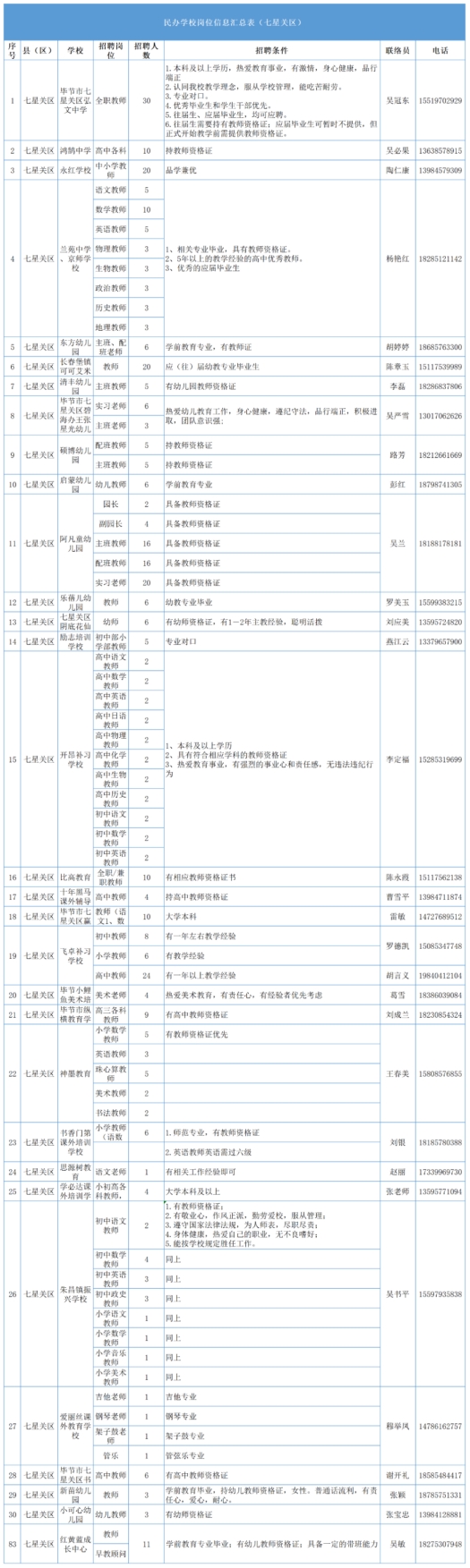 一、民辦學(xué)校崗位信息表(七星關(guān))