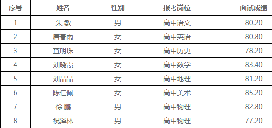 根據(jù)《安徽省宿松中學(xué)2021年公開招聘教師公告》規(guī)定,按照招聘計(jì)劃數(shù)和報(bào)考人員面試成績(jī),分崗位從高分到低分排序,按1:1比例依次等額確定朱敏等8名體檢、考察對(duì)象,現(xiàn)將體檢、考察有關(guān)事項(xiàng)通知如下: