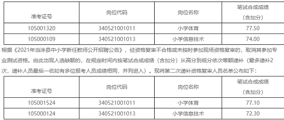 根據(jù)《2021年當(dāng)涂縣中小學(xué)新任教師公開招聘資格復(fù)審遞補(bǔ)人員公告》,當(dāng)涂縣教育局于5月11日對(duì)遞補(bǔ)資格復(fù)審人員進(jìn)行了現(xiàn)場(chǎng)資格復(fù)審,以下遞補(bǔ)資格復(fù)審人員未按時(shí)參加現(xiàn)場(chǎng)資格復(fù)審:
