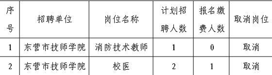 2021年東營市技師學(xué)院公開招聘網(wǎng)上報名繳費工作已結(jié)束。根據(jù)簡章規(guī)定,報名審核結(jié)束后,對應(yīng)聘人數(shù)與擬招聘人數(shù)之比達不到3:1的招聘崗位,計劃招聘1人的,取消招聘計劃;計劃招聘2人及以上的,按規(guī)定的比例相應(yīng)核減計劃,F(xiàn)將取消崗位情況予以公布。