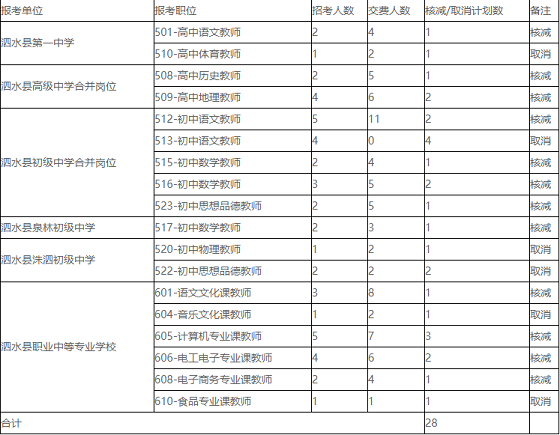 根據《2021年泗水縣事業(yè)單位公開招聘工作人員(教育類)簡章》規(guī)定,報名結束后,對應聘人數達不到1:3比例的招聘崗位,計劃招聘1人的,取消招聘計劃;計劃招聘2人(含)以上的,按規(guī)定的比例相應核減招聘計劃,F將有關崗位的核減情況公布如下。
