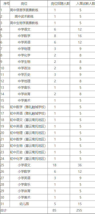 2、試教入圍人數(shù)根據(jù)招聘指標(biāo)數(shù),分別按以下比例確定入圍人數(shù):