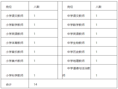 (一)招聘職位及人數(shù):本次公開招聘事業(yè)編制教師共計14人,其中鐵英小學(xué)7人,鐵英中學(xué)7人,具體職位詳見附件1。