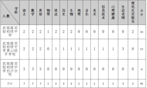 根據(jù)學(xué)校發(fā)展需要,現(xiàn)面向社會和各大院校招聘初中語文、數(shù)學(xué)、英語、物理、道法、歷史、生物、地理、體育、音樂、信息技術(shù)、心理健康等學(xué)科骨干教師和優(yōu)秀大學(xué)畢業(yè)生;招聘寄宿制生活老師;招聘具有學(xué)科背景的理化生實驗員,具體要求如下: