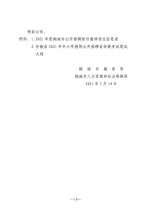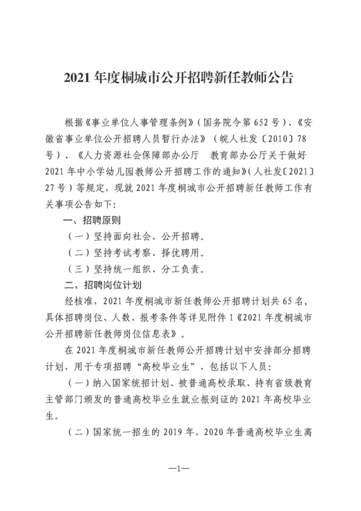 2021年安徽安慶桐城市公開(kāi)招聘新任教師公告【65人】
