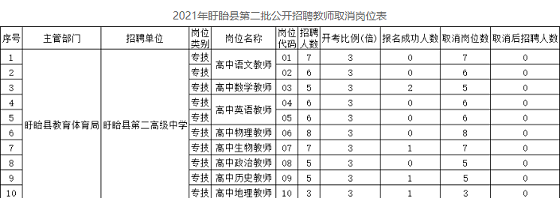 附件:2021年盱眙縣第二批公開招聘教師取消崗位表