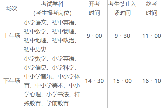 注:各學(xué)科筆試地點詳見準考證,具體終考時間以試卷上的考試時間為準。