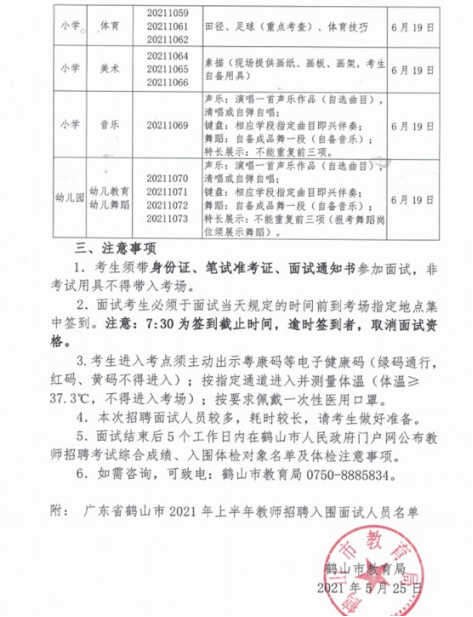 2021年上半年廣東江門鶴山市教師招聘面試公告