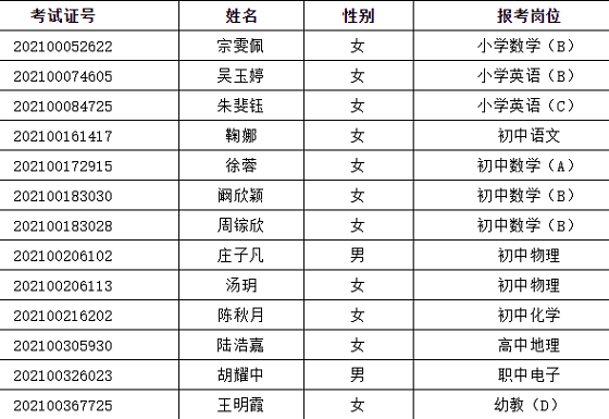 因部分考生放棄體檢、放棄選崗等,現(xiàn)根據(jù)《泰興市2021年公開招聘教師公告》規(guī)定,對下列崗位體檢人選進行一次性遞補。