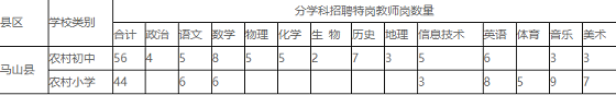 馬山縣2021年繼續(xù)實(shí)施義務(wù)教育特崗教師招聘計(jì)劃,招聘特崗教師100名,報(bào)名時(shí)間2021年6月1日至6月10日,招聘對(duì)象以普通高校應(yīng)屆本科畢業(yè)生為主,少量緊缺專(zhuān)業(yè)可招聘師范教育類(lèi)專(zhuān)科畢業(yè)生(只能報(bào)考小學(xué)崗位和初中音樂(lè)、美術(shù)、地理、生物學(xué)科),普通高校往屆本科、師范類(lèi)專(zhuān)科畢業(yè)生需具有相應(yīng)的教師資格證書(shū)。年齡不超過(guò)30周歲。招聘崗位、條件及要求請(qǐng)登陸廣西特崗招聘網(wǎng)(http://tgjszp.gxeduyun.edu.cn)詳細(xì)了解并網(wǎng)上報(bào)名,本次招聘報(bào)名及資格審查采取網(wǎng)絡(luò)方式進(jìn)行,不設(shè)現(xiàn)場(chǎng)報(bào)名。未盡事宜,請(qǐng)電話(huà)咨詢(xún)馬山縣教育局人事股。咨詢(xún)電話(huà):07716819786。