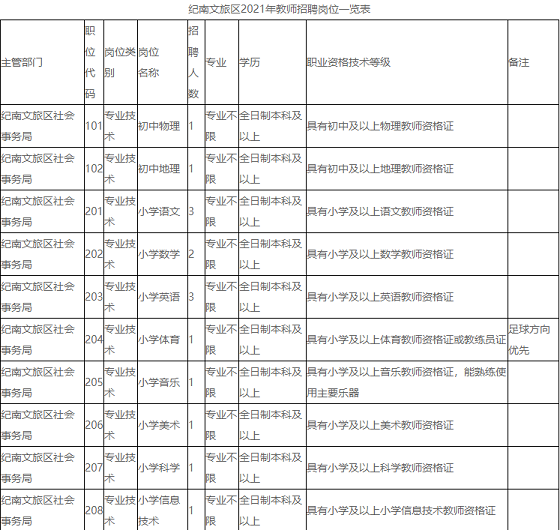附件:紀(jì)南文旅區(qū)2021年教師招聘崗位一覽表