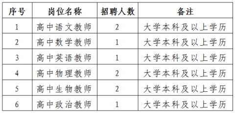 3.學(xué)歷條件:本科(含本科)以上學(xué)歷,專業(yè)對(duì)口,具備高級(jí)中學(xué)教師資格,能勝任高中相應(yīng)學(xué)科教學(xué)工作。