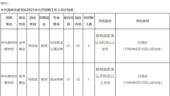 附件:2021年中共禹州市委黨校公開招聘工作人員計劃表
