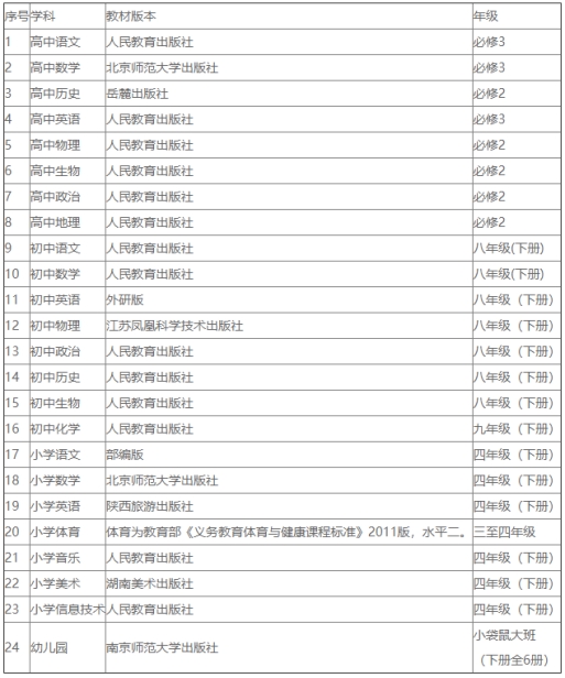 應(yīng)聘高中語文、數(shù)學(xué)、英語崗位者采用高中一年級(jí)下學(xué)期必修三現(xiàn)行教材,應(yīng)聘高中歷史、政治、物理、生物、地理崗位者采用高中一年級(jí)下學(xué)期必修二現(xiàn)行教材;應(yīng)聘小學(xué)語文、數(shù)學(xué)、英語、音樂、美術(shù)、信息技術(shù)崗位者采用小學(xué)四年級(jí)下學(xué)期現(xiàn)行教材;應(yīng)聘小學(xué)體育崗位者采用體育為教育部《義務(wù)教育體育與健康課程標(biāo)準(zhǔn)》2011版,水平二(三至四年級(jí));應(yīng)聘初中語文、數(shù)學(xué)、英語、物理、政治、歷史、生物崗位者采用八年級(jí)下學(xué)期現(xiàn)行教材;應(yīng)聘初中化學(xué)崗位者采用九年級(jí)下學(xué)期現(xiàn)行教材;應(yīng)聘幼兒園崗位者采用大班小袋鼠下冊(cè)全冊(cè)現(xiàn)行教材。所需教材由縣教育局為考生準(zhǔn)備,考生不得攜帶教材、參考資料及其他教學(xué)輔助工具。教材版本見附件。
