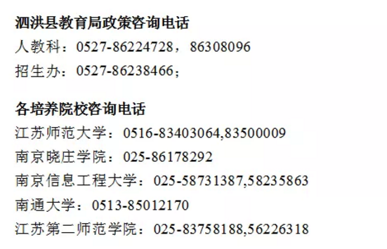答:符合國家高考政策、戶籍為泗洪縣的高中畢業(yè)生,均可以報(bào)考泗洪縣鄉(xiāng)村教師定向生,在本科提前批次填報(bào)本縣鄉(xiāng)村教師定向志愿。錄取的定向師范生,須在入學(xué)前憑入學(xué)通知書與泗洪縣教育局簽訂《定向就業(yè)協(xié)議書》。