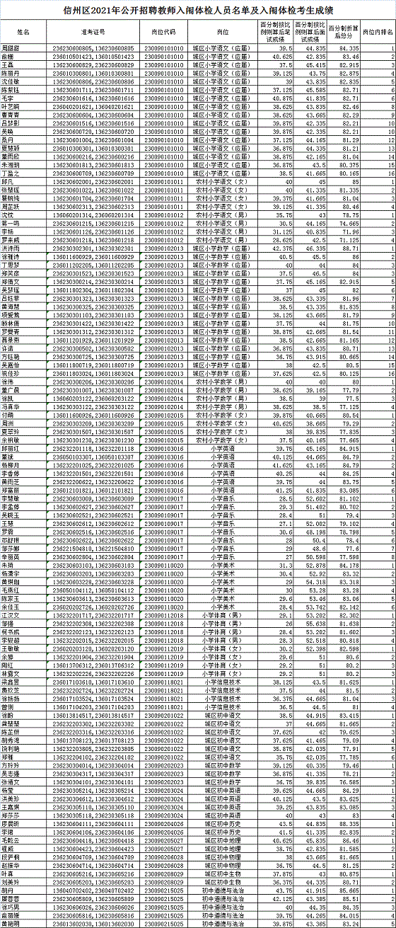 附件:信州區(qū)2021年公開招聘教師入闈體檢人員名單及入闈體檢考生成績