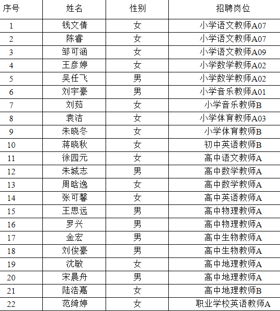 常熟市2021年教育系統(tǒng)公開(kāi)招聘中小學(xué)教師擬錄用名單(二)