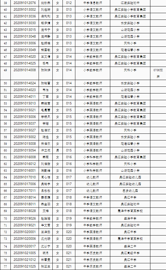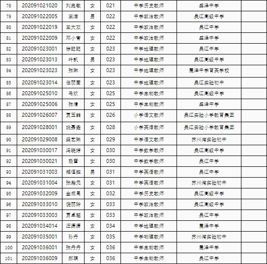根據(jù)《蘇州市吳江區(qū)教育系統(tǒng)2021年選聘優(yōu)秀畢業(yè)生簡章》,經(jīng)過綜合能力素質(zhì)評價、面試、體檢、考察(政審)等程序,以下擬聘用人員予以公示。