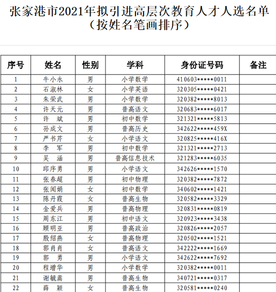 根據(jù)《張家港市2021年引進高層次教育人才公告》和《江蘇省梁豐高級中學2021年引進高層次教育人才公告》,經(jīng)材料審核、面試考核、體檢、政審合格,現(xiàn)面向社會公示擬引進人員名單。