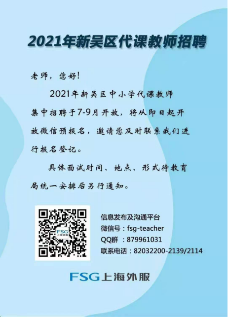 2021年新吳區(qū)中小學(xué)代課教師集中招聘于7-9月開(kāi)放,將從即日起開(kāi)放微信預(yù)報(bào)名,邀請(qǐng)您及時(shí)聯(lián)系我們進(jìn)行報(bào)名登記。
