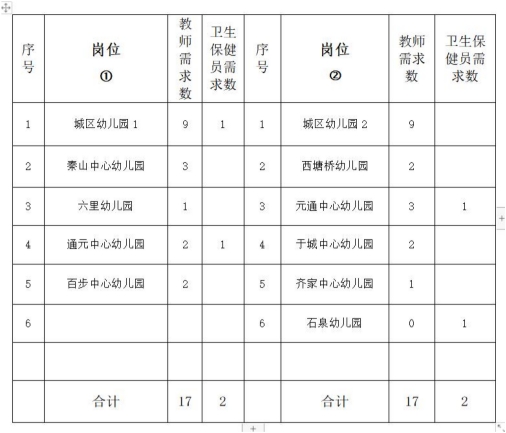 一、計(jì)劃數(shù):教師34人(分崗位①、崗位②),衛(wèi)生保健員4人。