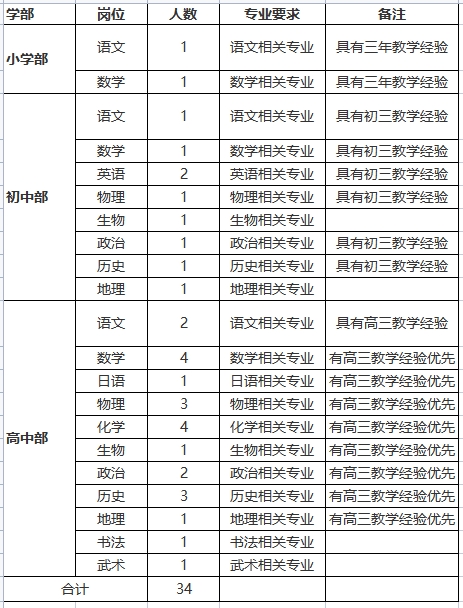 備注:疫情期間由學(xué)校對(duì)應(yīng)聘者所在地區(qū)進(jìn)行分類,符合應(yīng)聘條件的將通知參加面試考核,位于中高風(fēng)險(xiǎn)地區(qū)的應(yīng)聘者另行商議考核形式。